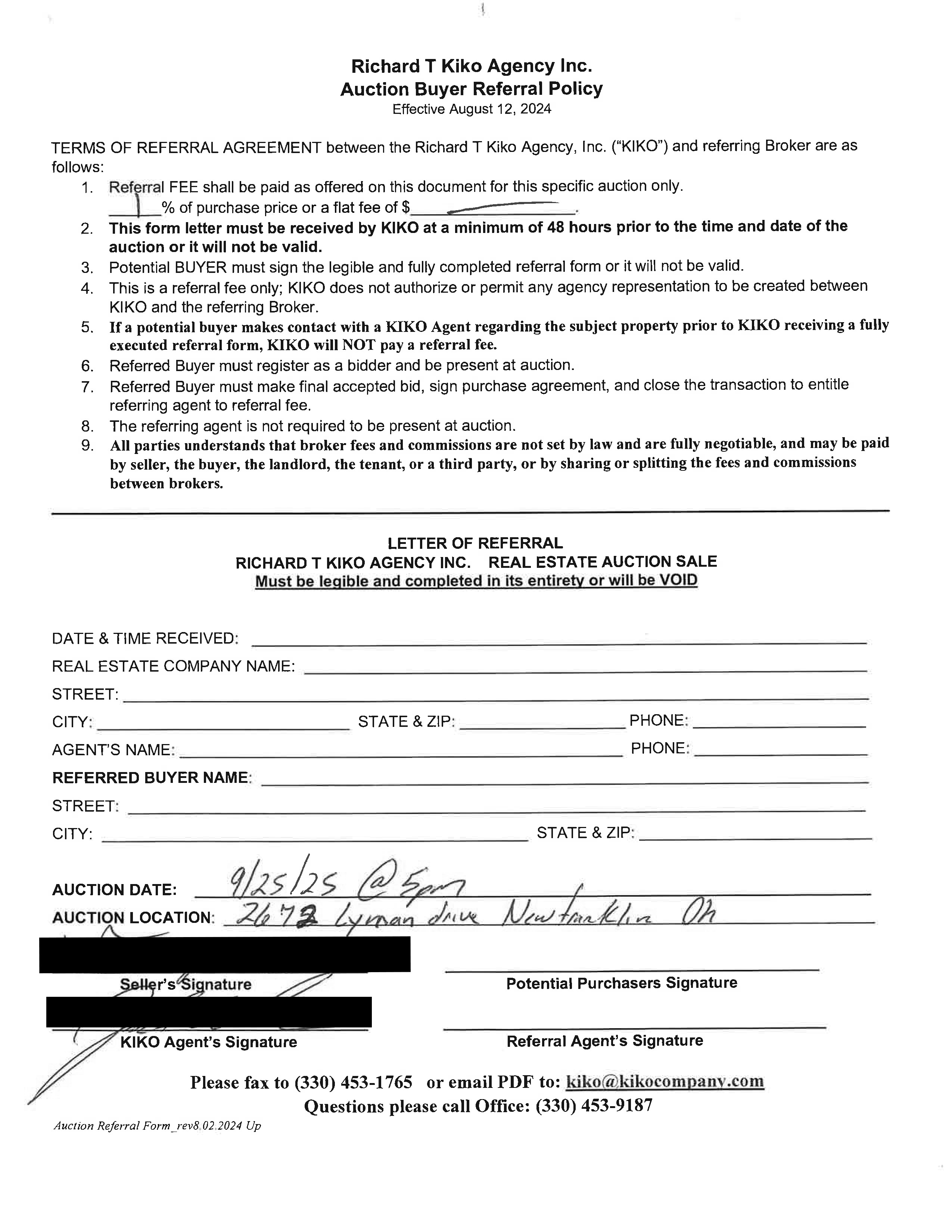 10% down auction day, balance due at closing. A 10% buyer’s premium will be added to the highest bid to establish the purchase price. Any desired inspections must be made prior to bidding. All information contained herein was derived from sources believed to be correct. Information is believed to be accurate but not guaranteed.